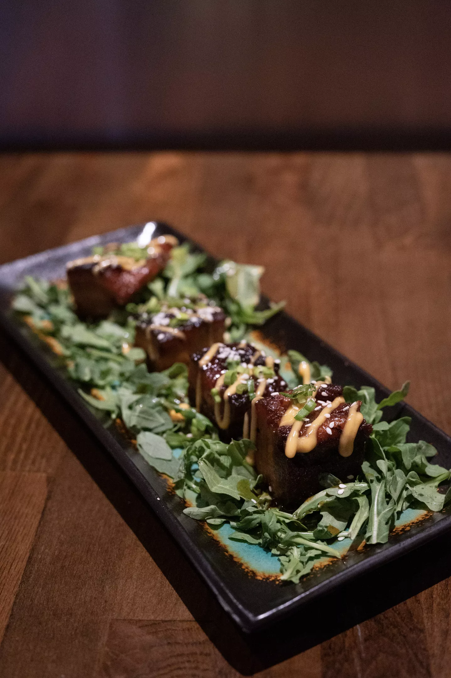 The simple menu of small plates and bites can be entirely gluten-free, with all glutinous items stored in a separate area — since that’s why Mullett’s won, that’s how we order: spinach and artichoke dip, Brussels sprouts, brisket crostini, and a banh mi, all gluten free.