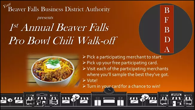 Calling all Chili lovers! Visit our Beaver Falls Merchants as they whip up their best Chili! Start at a participating merchant and pick up a card. You'll visit each participating merchant, vote the best chili and submit your card. The winning merchant gets the coveted Ladle Trophy and bragging rights for the 2020 year and YOU get the chance to win gift certificates from the participating awesome merchants! Grab your friends and your discerning tastebuds! See you there!